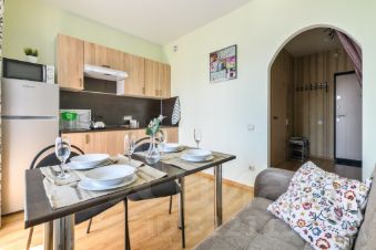 Квартира полностью оснащена всеми необходимыми предметами для жизни: ЖК-телевизор, высокоскоростной интернет WIFI, стиральная машина, утюг, фен, гладильная доска, сушилка для белья.