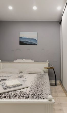 Квартира рассчитана на 4 спальных места. В спальне есть двуспальная кровать размером 180/200, а в кухне-гостиной — большой раскладной диван.200/200.