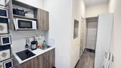 В студии современный дизайн и есть все необходимое для комфортного проживания: