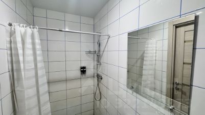 - Собственная ванная комната: туалет, раковина, зеркало, душевая, фен, полотенца,