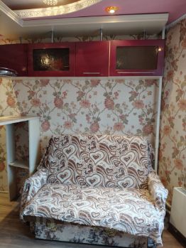 кровать в зале встроенная в стенку, удобно место не занимает! На кухне барная стойка, диван раскладывается! Коридора два, один маленький для обуви;второй большой -где стоит вместительный зеркальный шкаф
