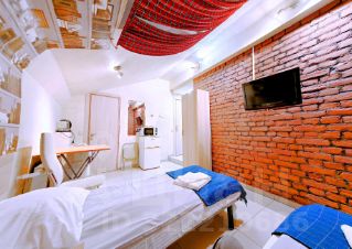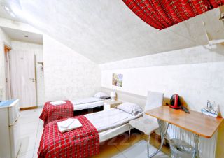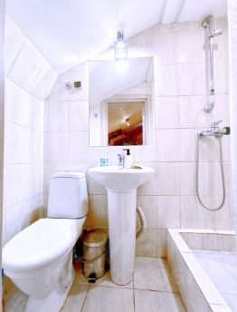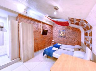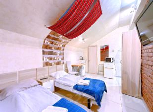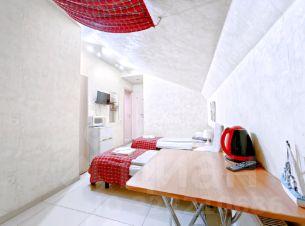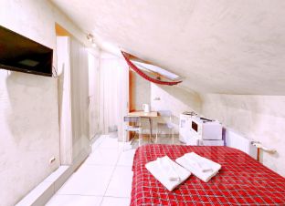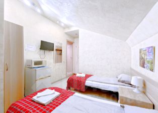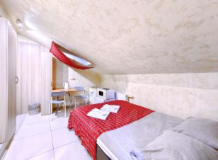 -Мансардный этаж (три студии на выбор). Евроремонт, 2-х спальная кровать, 2 доп.спальных места на диване, 2 шкафа, тумбочки, TV, Wi-Fi. Холодильник, СВЧ, электрочайник, С/У совмещенный. Стиральная машина.