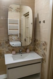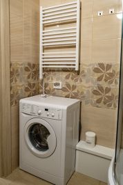 В квартире есть все необходимое для проживания: двуспальная кровать, чистая ванная комната, кухня, плита, посудомоечная машина, микроволновка, холодильник, чайник, посуда, фильтр для питьевой воды, утюг и фен.