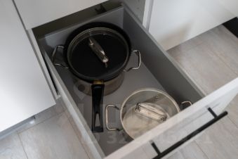 варочная панель, микроволновка, чайник, холодильник, посуда для готовки и сервировки