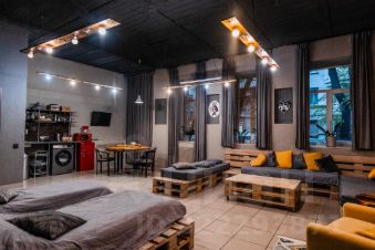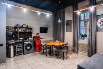 Стильный лофт с питерским вайбом для проживания и вечеринок. Высокие потолки, необычные интерьерные решения, огромный стол слэб из карагача, яркие детали и много мелочей для комфортного прибывания. Есть все необходимое!