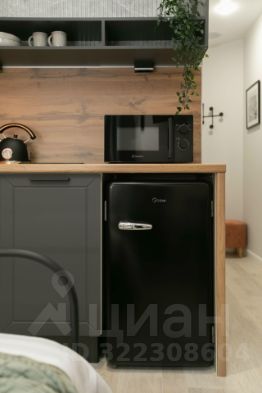 Уютная квартира студия полностью укомплектована для проживания, есть вся бытовая мебель и техника