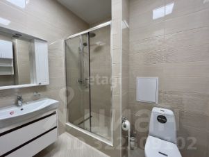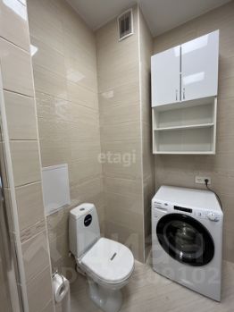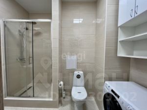 Совмещенный санузел с душевой кабиной, местами для хранения и стиральной машиной, феном.