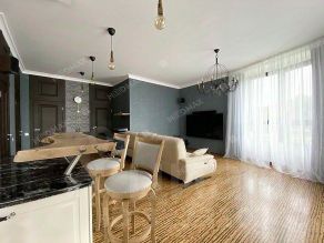 В квартире выполнен качественный евроремонт по индивидуальному дизайн-проекту (делали для себя). В отделке - дорогие экоматериалы. Планировка - спальная комната с видом на парк и озеро, просторная гостиная с оборудованной кухней (посуд. машина), раздельный санузел, гардеробная комната. Комфортабельная мебель, современная техника (tv 75 дюймов, сушильная машина).