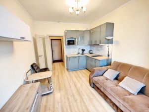 Квартира с хорошим стильным ремонтом, светлая и уютная. Отличное месторасположение дома, рядом остановка общественного транспорта, метро Дыбенко в 3 минутах на транспорте или пешком 15-20 минут, рядом парковая зона, парк Оккервиль, лесной массив, множество магазинов, фитнес-центр, кафе и пекарни, ТЦ МЕГА.