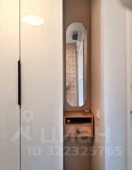 Предусмотрено много мест хранения - большие шкафы в прихожей и комнате, шкафчик в ванной, кровать с подьемным механизмом.