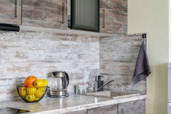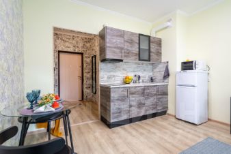 • Полностью оборудованная кухня: Есть все необходимое: холодильник, микроволновая печь, плита, вытяжка, чайник, а также полный комплект посуды и приборов.