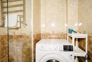 Полностью оборудованная кухня: холодильник, плита, микроволновая печь, электрочайник, стиральная машина, посудомоечная машина.