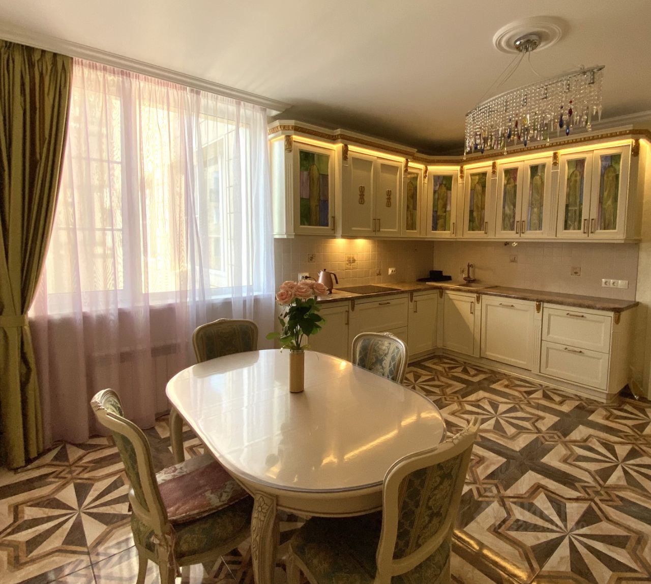 - Кухня 20кв.м., просторная. Полностью мебелизирована. Со всем необходимым. Встроенные: духовой шкаф, варочная индукционная панель, вытяжка, микроволновка и посудомоечная машина, встроенный фильтр для очищения воды, стол и стулья.