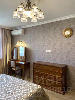- В 1 комнате: двуспальная кровать, шкаф, комод, 2 тумбы, туалетный столик с зеркалом и кондиционер.