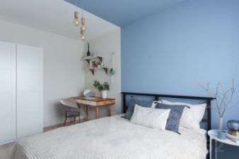 удобная кровать 180x200 см, большой телевизор 4K 49 дюймов со Smart-TV, удобный шкаф и письменный стол ручной работы.