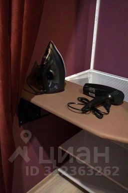гардеробная для хранения вещей, подвесная гладильная доска, утюг, фен.