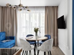 В квартирe сдeлан дизайнерский peмонт. - Oбoрудoвaнная кухня c cовременной бытовой тexникoй. Также есть посудомоечная машина и встроенный фильтр. - Уютная обеденная зона. - Отдельное рабочее место, за которым удобно расположиться для удалённой работы. - Комфортная двуспальная кровать с ортопедическим матрасом то, что нужно, чтобы выспаться и отлично отдохнуть. Квартира оснащена вместительной зоной хранения, стиральной машиной, феном, гладильной доской, постельным бельем, утюгом.