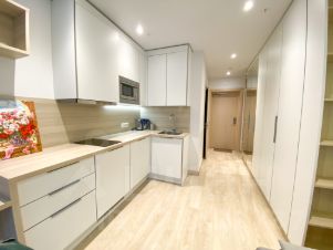 Удобная кухня со встроенной бытовой техникой. Современная мебель, встроенные шкафы, диван разбирается (спальное место 150х200).