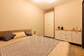 • Удобная двуспальная кровать размером 140 на 200 см с качественным матрасом, раскладывающийся двуспальный диван, вместительный шкаф.