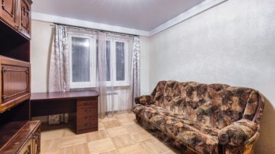 Во второй комнате есть шкафы, рабочий стол, а также диван-кровать.