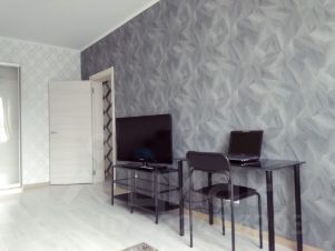 - гостиная с раскладывающимся диван-кроватью (160*210), красивым и уютным местом для отдыха с телевизионной техникой и двумя креслами, с рабочим местом для компьютера, с вместительным шкафом,