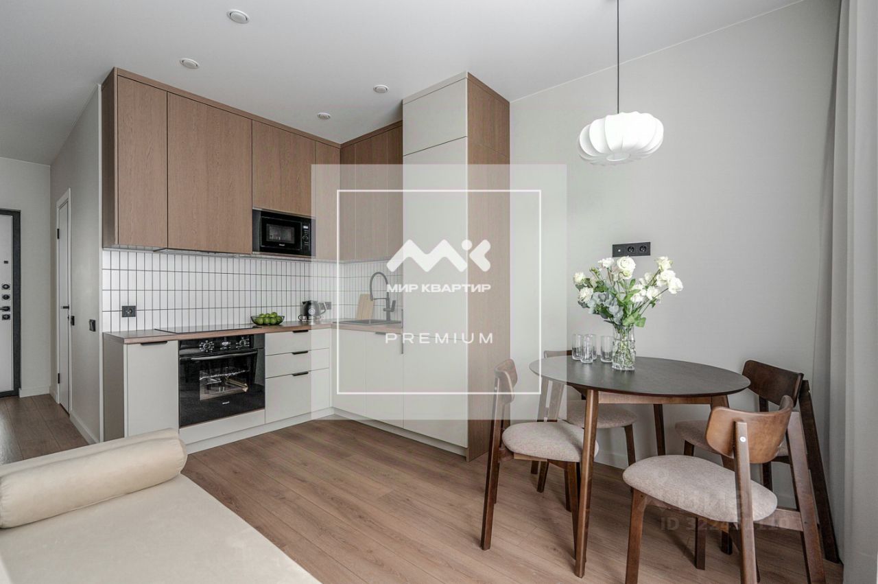 Дизайнерский проект по эстетике продуман до мелочей: благодаря отделке в квартире создается ощущение наполненности светом, при этом материалы природных тонов дают уют и спокойствие. Пространство грамотно зонировано: кухня с зоной отдыха и выходом на застекленный балкон, изолированная спальня, отдельная гардеробная, совмещенный санузел.