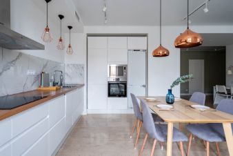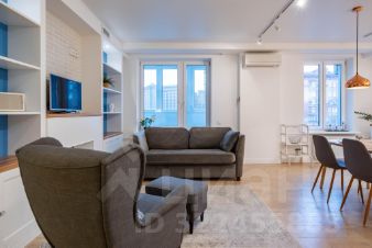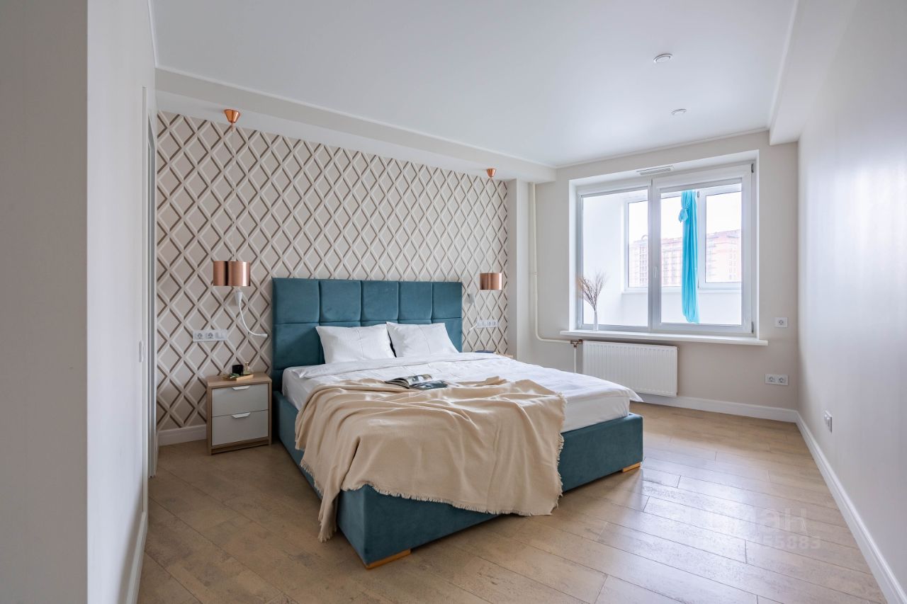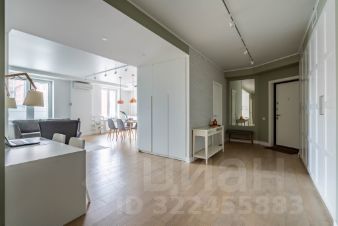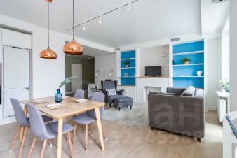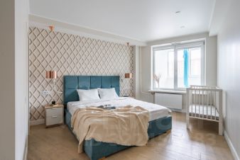 На Васильевском острове в современном жилом комплексе сдаётся полностью укомплектованная для комфортного проживания просторная семейная квартира с двумя спальнями, кухней-гостиной с продуманным зонированием, с застеклённой лоджией с гамаком для аэройоги, общей площадью 104 м2.