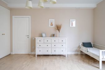 Вторая спальня с раскладным двухспальным диваном (22 м2) может быть детской для маленьких или взрослых детей. В квартире есть две односпальные кровати, детская кровать (160 см), а также кроватка для малышей и стульчик для кормления - мы рады детям любого возраста.