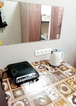 Есть все необходмое для проживания, две двухъярусные кровати, (отдельные спальные места), шкаф, стол, стулья, телевизор, холодильник, стиральная машина, микроволновка, мультиварка, аэрогриль, индукционная плитка, утюг, чайник, посуда, постельное белье, подушки, матрасы, одеяла, высокоскоростной Wi-Fi роутер.