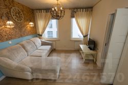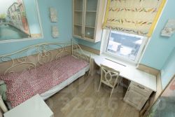Просторная кухня-гостиная и небольшая комната-кабинет для счастливых снов. Вся мебель и сантехника изготавливались на заказ или приобретались в мебельных бутиках, фурнитура в санузле и на кухне из латуни. Квартира оборудована всей необходимой техникой: телевизор, стиральная и посудомоечная машины, микроволновая печь и духовой шкаф, сушилка для одежды, плита и холодильник, есть также фен, утюг, пылесос. Вся бытовая техника встроенная. На кухне и в коридоре - тёплый пол. Есть бойлер на случай отключения горячей воды.