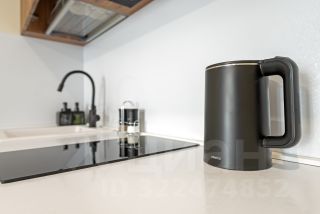 В кухонной зоне: микроволновая печь, холодильник, чайник, плита, посуда и столовые приборы на любой случай.