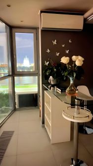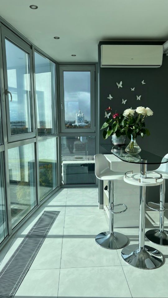 Сдается на длительный срок просторная квартира 80 кв.м. в Красногвардейском районе. Дом по адресу: Большеохтинский проспект, 9 лит А. С потрясающим видом на Heву и Cмольный coбоp, в 3 минутах от Большеохтинского моста. Панорамные Окна. Из окон открывается великолепные виды на Неву, на мост Петра Великого, Смольный собор и центр города.
