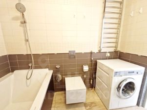 Два СУ, сантехническое оборудование качественное, зарубежных производителей, гостевой СУ оборудован душевой кабиной, основной СУ оборудован ванной, тёплый пол, стиральная машинка "Миле".