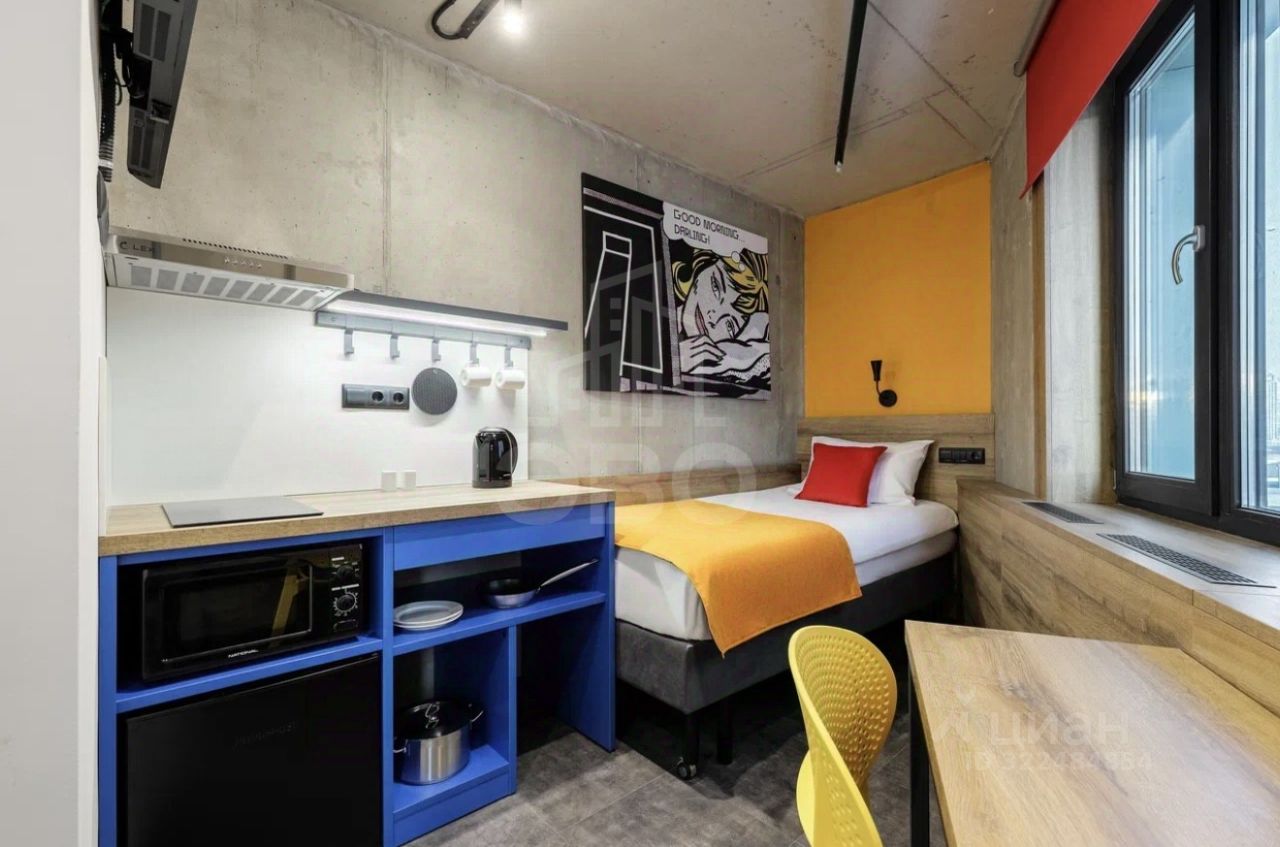 На территории: фитнес зал, коворкинг для работы и учебы, бар и ресторан, кинотеатр, игровая зона с PlayStation. Круглосуточный ресепшен и охрана, пространство для мероприятий на 1 этаже.