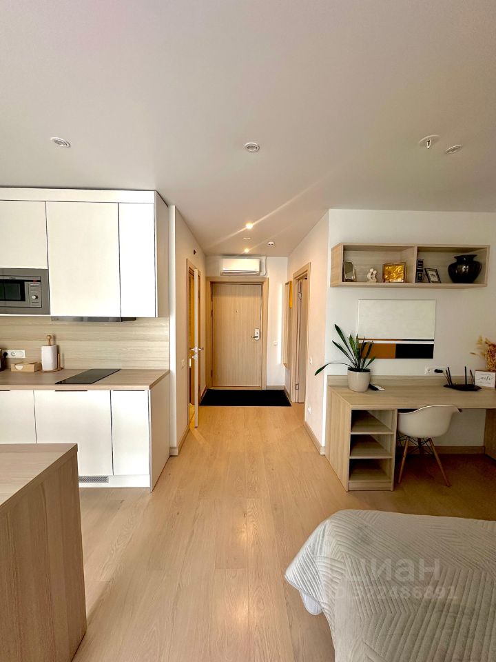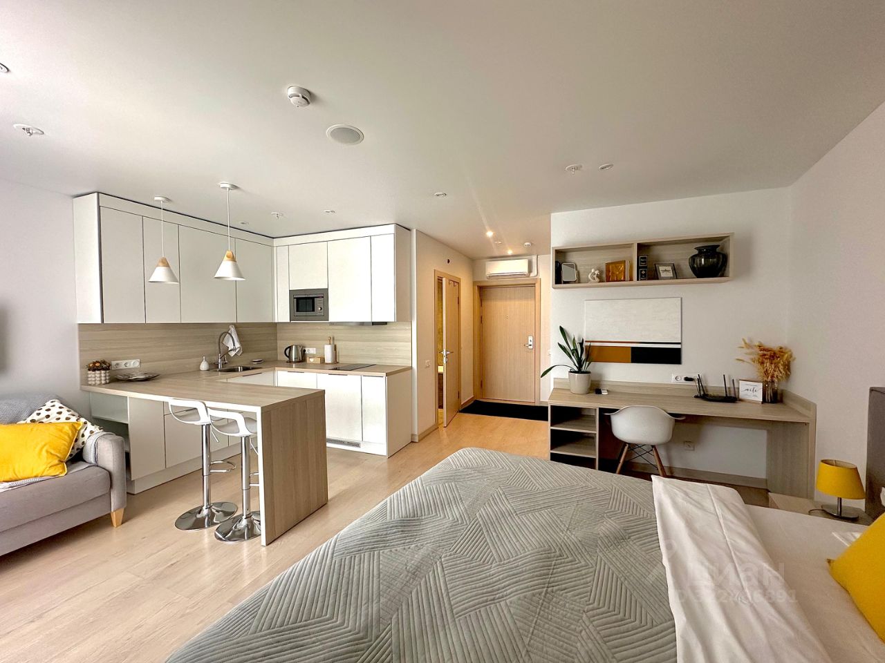 Апартаменты имеют хороший ремонт, эргономичную планировку, большую оборудованную гардеробную, большую кровать, кресла, диван и рабочую зону. Для Вас доступны все преимущества апарт-отеля: круглосуточная охрана и видеонаблюдение, консьерж и просторное лобби с удобными местами для встреч и работы, уборка апартаментов.