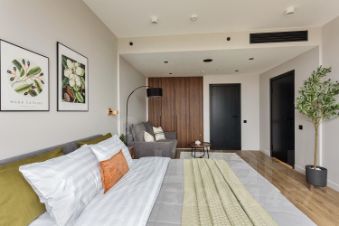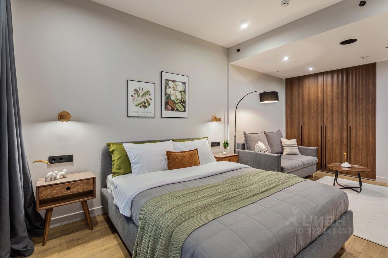 Спальная зона с двуспальной кроватью 160x200 + качественный матрас Аскона, раскладной дизайнерский диван 140x200 для двух взрослых. Телевизор 55' Xiaomi с цифровыми каналами (работают Ютуб и т.д.), рабочее большое место с настольной лампой, стул с поддержкой спины, бесплатный 300 мбит/с WI-FI + ethernet розетки;