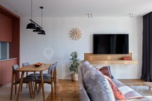 Ремонт выполнен по дизайн проекту с использованием дорогих материалов. На полу дорогой качественный паркет, импортная мебель и бытовая техника, все в квартире сделано под заказ.