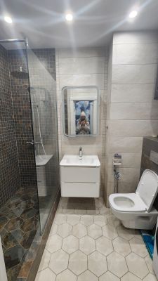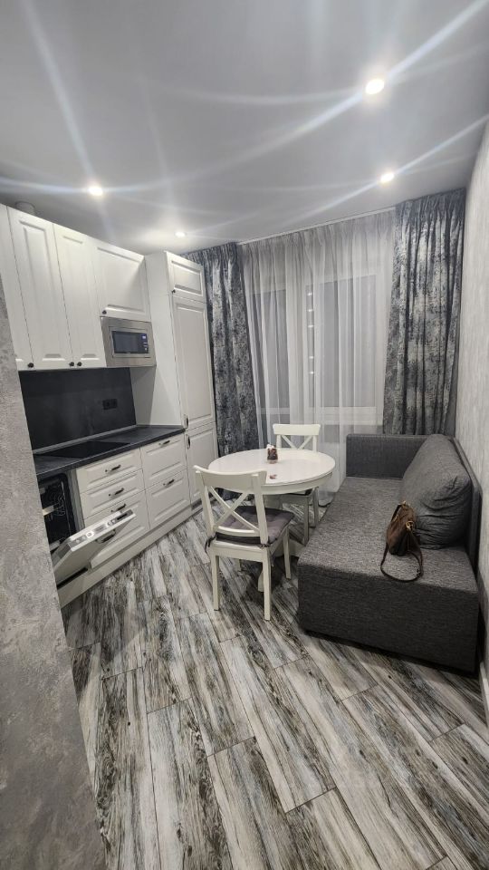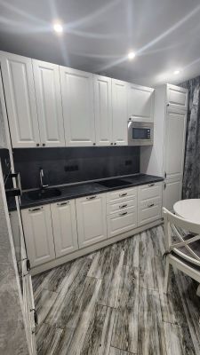 В квартире сделан качественный ремонт, есть вся необходимая мебель и бытовая техника.В комнате комфортная кровать с ортопедические матрасом и большой вместительный гардеробный шкаф. Посудомоечная машина, стиральная машина, бойлер, СВЧ печь, духовой встроенный шкаф, два телевизора - в кухне и в комнате, два спальных места - кровать в комнате и диван в кухне. Застекленная лоджия, вид из окон - во двор.