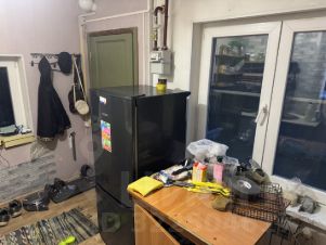 + кухня отдельное помещение с индукционной плитой и посудой, двухкамерным холодильником и стиральной машиной