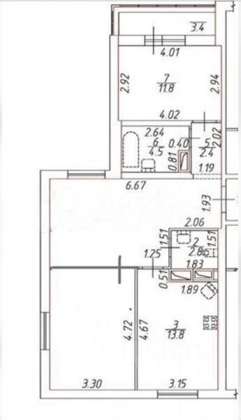 Отличная планировка: просторная кухня, 2 отдельные комнаты и между ними гостиная, два с/у