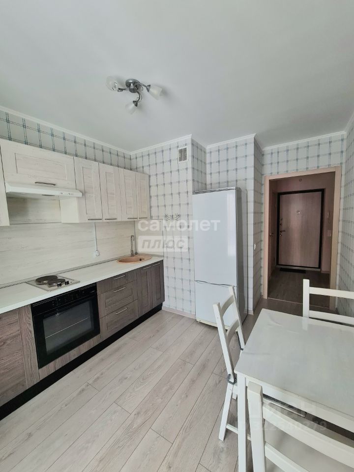 ~ Кухня: есть холодильник, варочная панель, духовка, микроволновая печь, вытяжка, кухонный гарнитур, обеденный стол, стулья.
