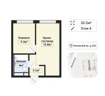 • Удобная планировка позволяет комфортно зонировать пространство: полноценная кухня-гостиная и спальня.
