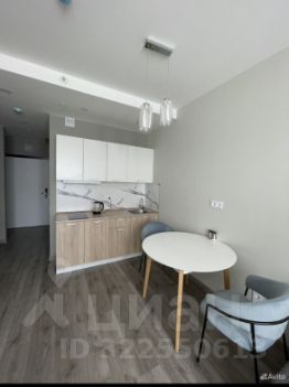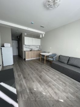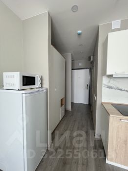 Студия со свежим косметическим ремонтом, полностью готова для комфортного проживания. В квартире есть вся необходимая мебель: кухня оборудована гарнитуром, в комнате предусмотрены удобные места для отдыха. В наличии необходимая техника — холодильник и стиральная машина. Санузел совмещённый, оборудован душевой кабиной.