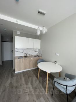 Сдаётся уютная студия в современном доме, всего в минуте пешком от метро. Общая площадь апартаментов — 25 кв. м, из которых 15 кв. м — жилая зона и 5 кв. м занимает кухня. Апартаменты находятся на 12 этаже 14-этажного здания, с окнами, выходящими во двор, и высотой потолков 2,7 метра.