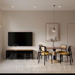 Визуализация от реального вида квартиры отличаются стульями и тв.тумбой.