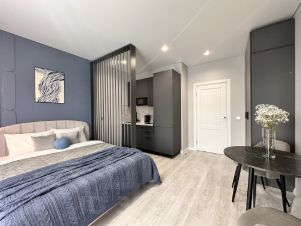 Для приятного проживания есть теплый пол в санузле, установлен кондиционер, видеодомофон с системой "Умный дом", интернет.