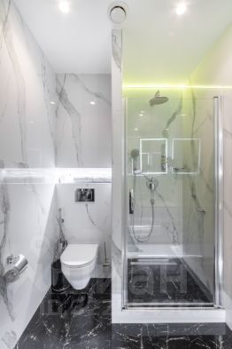 Собственный санузел, оборудованный душевым боксом, унитазом, гигиеническим душем, косметическим зеркалом и феном;