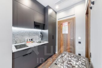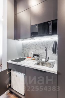 Мини-кухня с индукционной варочной панелью, вытяжкой, мини-холодильником, чайником, фильтром для питьевой воды под мойкой Аквафор, с краном, микроволновой печью;