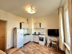 Сдается уютная однокомнатная квартира площадью 40.9 кв. м на 18-м этаже современного 26-этажного дома. Квартира находится всего в 12 минутах пешком от станции метро "Проспект Славы".