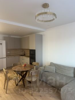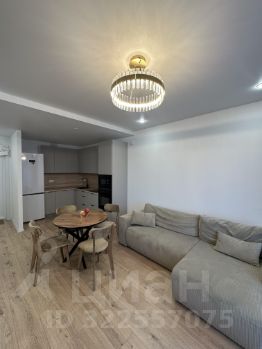 В квартире есть всё необходимое для комфортного проживания: в просторной кухне - гостиной (19 м) и в комнатах установлена мебель, техника представлена холодильником, варочной панелью, вытяжкой, посудомоечной машиной, чайником, телевизором и стиральной машиной, есть встроенные духовой шкаф и свч.